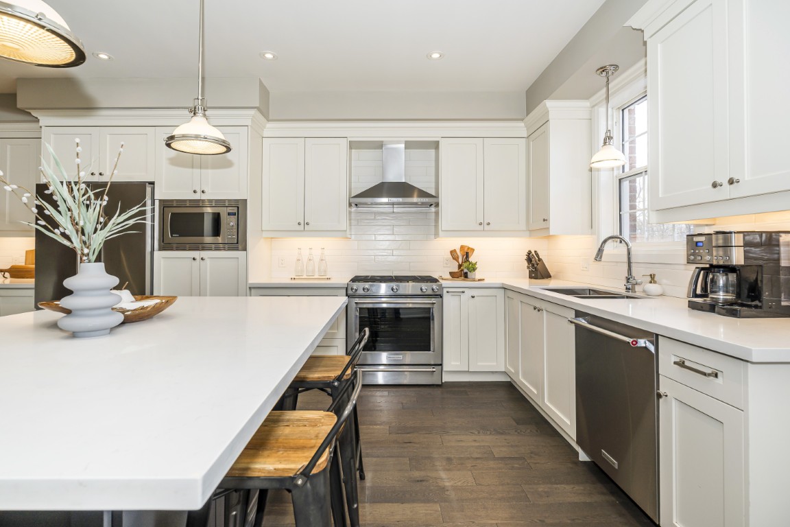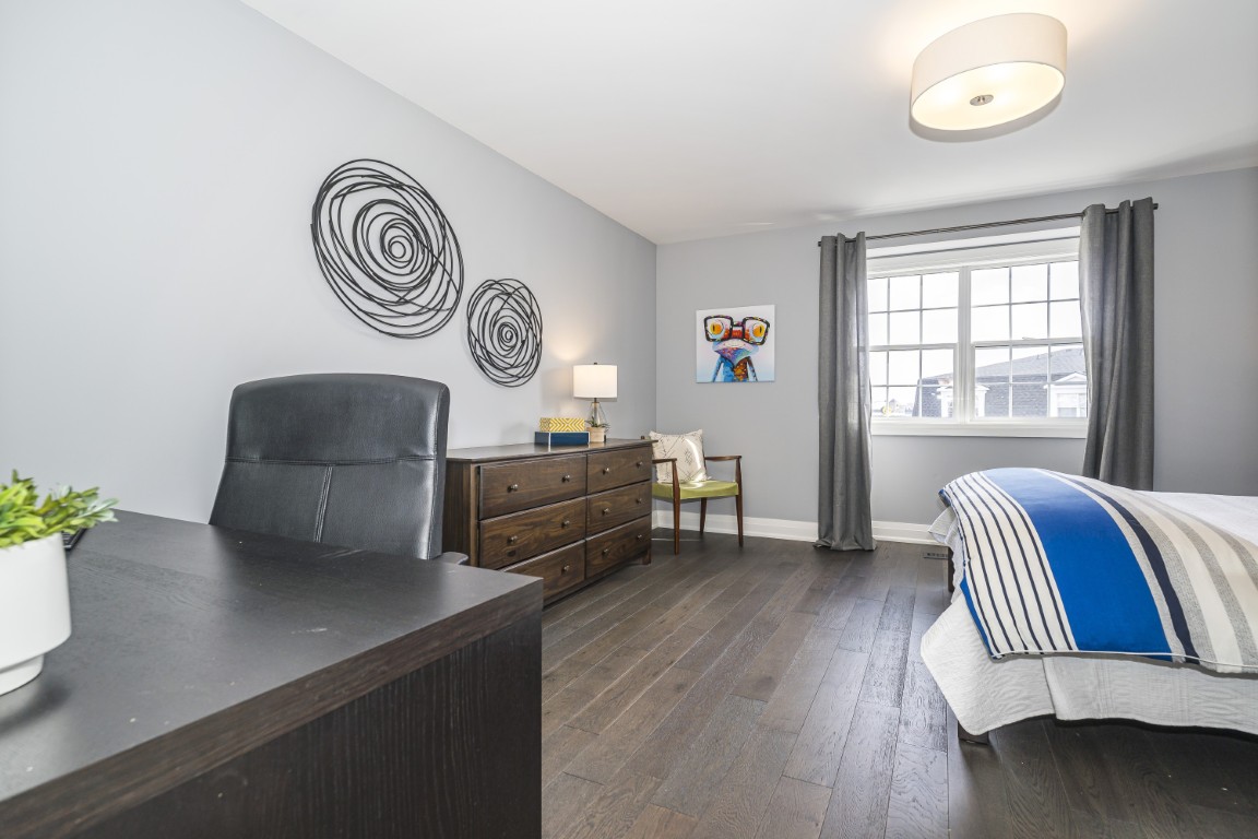 rear yard & ravine. Engineered hardwood on main & bedroom levels. Second floor features