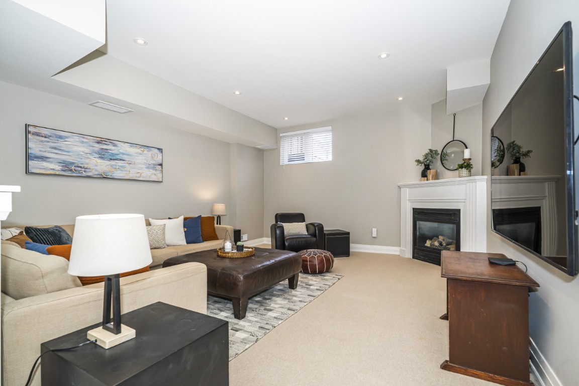 another 4-pc bath are on the 3 rd floor. Basement rec room with gas fireplace, above grade window
