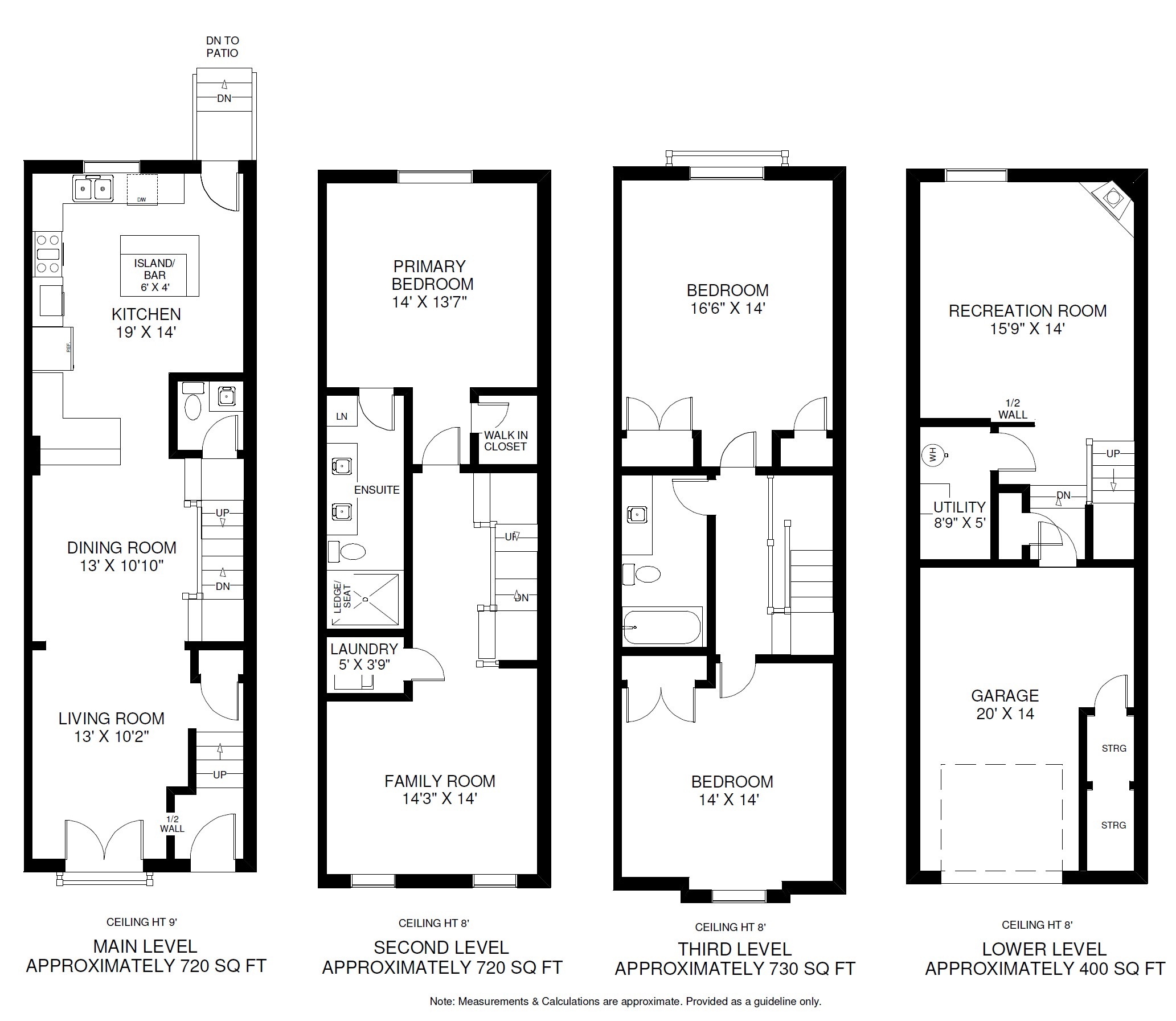 recreation areas. Open concept main floor with 9’ ceilings, pot lights & French doors to Juliette